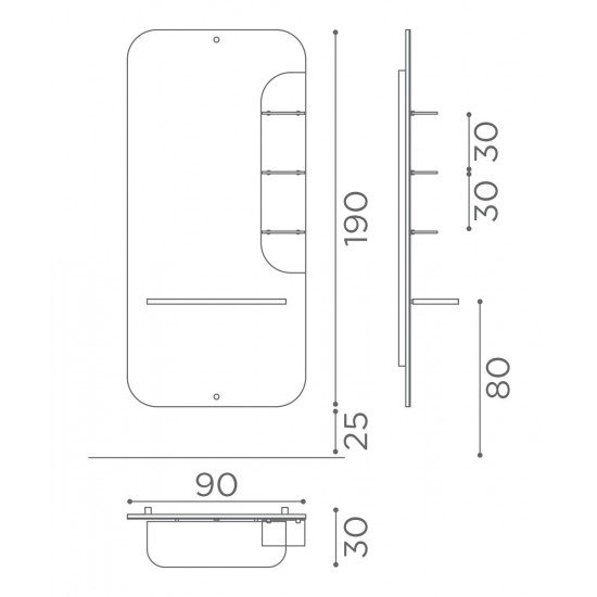 - Veidrodžio kraštą ties lentynomis galima rinktis iš plokštės ar kaip odos apdailos elementą